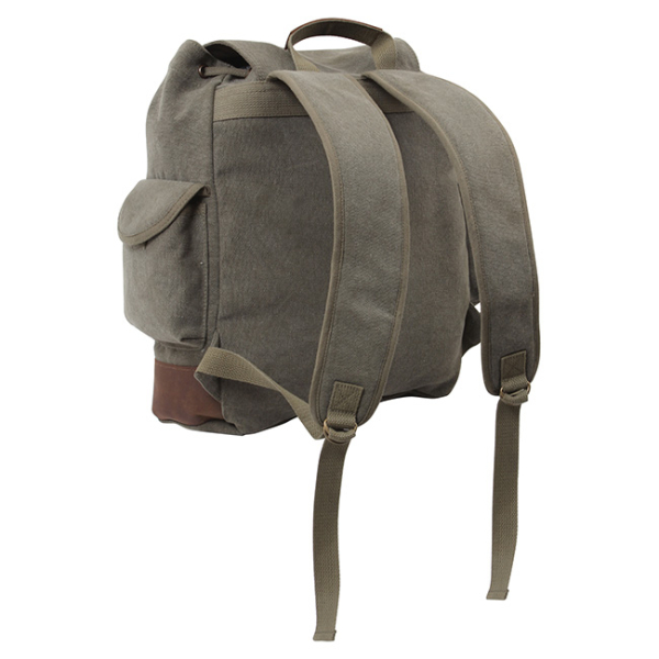 Klasický menší batoh ze silného bavlněného plátna ve vintage provedení, doplněný o kožené a mosazné detaily. Stylový a praktický doplněk každého správného turisty.