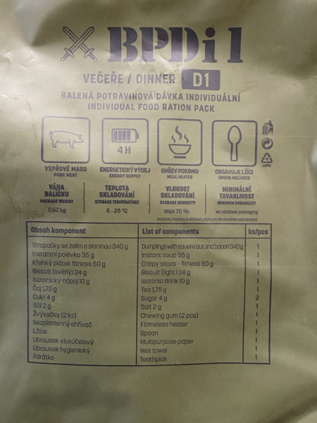 Bojová dávka potravin večeře BPDi1 D1