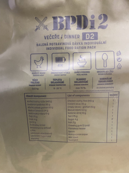 Bojová dávka potravin večeře BPDi1 D1