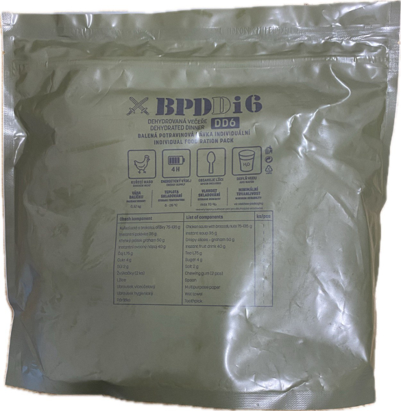 Bojová dávka potravin dehydrovaná večeře BPDDi6 DD6 Kuřecí soté s brokolicí, oříšky