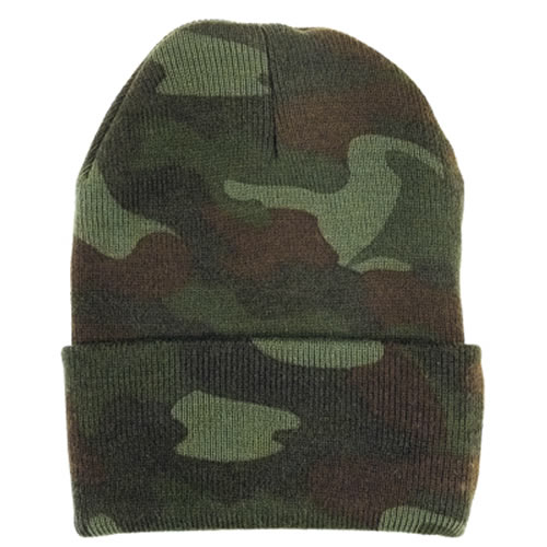 Jemně pletená čepice s maskovacím vzorem Woodland.